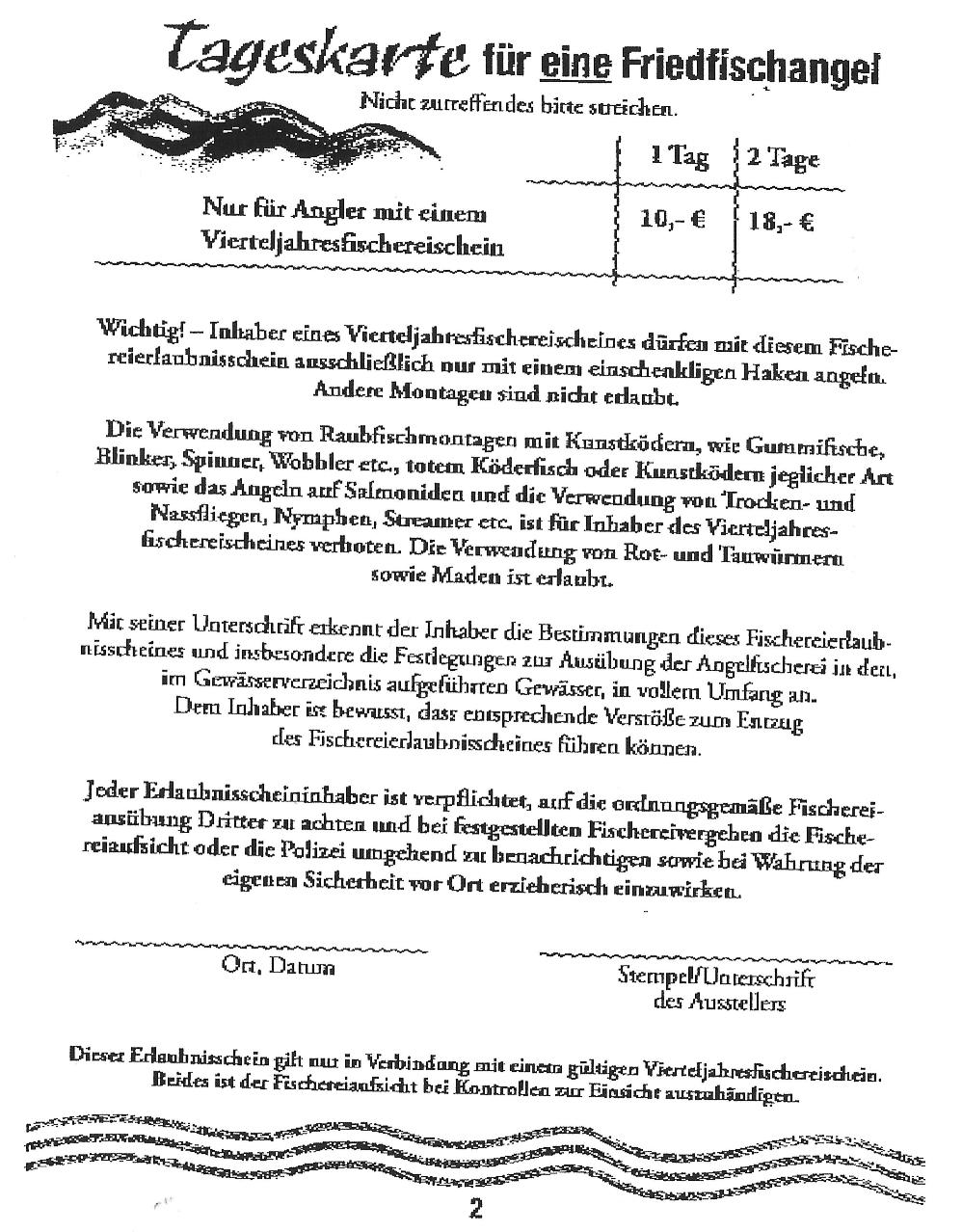 Für weitere Informationen können Sie hier eine Angelberechtigung für Inhaber eines Vierteljahresfischereischeines ansehen.